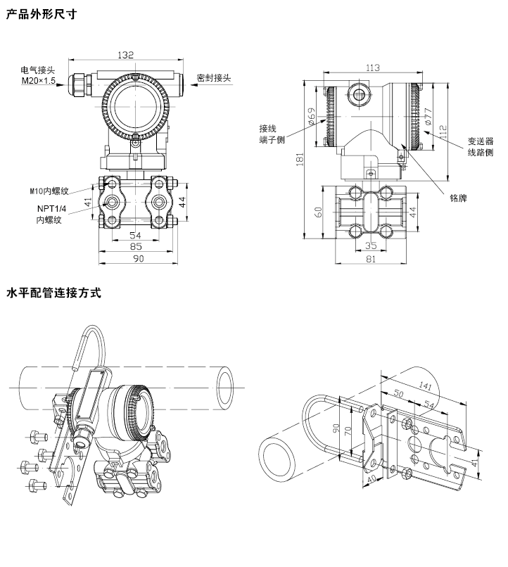 | 安裝注意事項(xiàng)/Installation precautions-----------------------------------------------◆◆①防止變送器與腐蝕性或過熱的補(bǔ)測(cè)介質(zhì)相接觸。 ②要防止渣滓在導(dǎo)壓管內(nèi)沉積。 ③導(dǎo)壓管要盡可能短一些。 ④兩邊導(dǎo)壓管內(nèi)的液柱壓頭應(yīng)保持平衡。 ⑤導(dǎo)壓管應(yīng)安裝在溫度梯度和溫度波動(dòng)小的地方。 ⑥防止引壓管內(nèi)結(jié)晶或低溫結(jié)冰。 ⑦請(qǐng)勿將排氣/排液閥全部擰開,以免密封鋼珠掉落! |